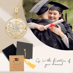 - Graduation Gifts Compass Necklace: Comes with a classic graduate jewelry gift box, a thoughtful present for her. This Grads Necklace is an ideal congratulatory graduation gift for a high school or college graduate, master, PhD, nursing student, law school graduate, or any graduating daughter, granddaughter, niece, close friends, or loved one.