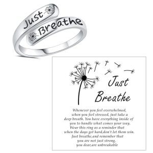Dandelion Just Breathe Ring for Women 925 Sterling Silver Adjustable Hope Inspirational Jewelry Encouragement Gifts